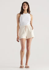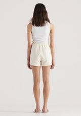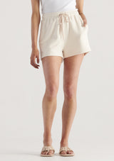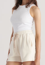 The Nelson Short by Elka Collective is a relaxed fit track short made in soft French terry fabrication. It features an elasticated waist, external drawcord and side seam pockets. Pairs perfectly as a set with the Nelson Jacket.