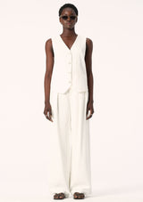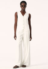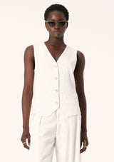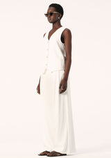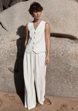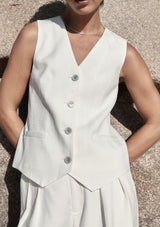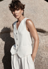 The Nina Vest from Elka Collective is designed in a tailored silhouette and features a traditional sleeveless cut with v-neckline, shell buttons, front welt pockets and a back strap with adjuster to cinch in the waist. Crafted from a twill-weave acetate fabrication with a subtle sheen, this vest can be styled alone or layered over thin knitwear, shirts and basic tees.