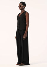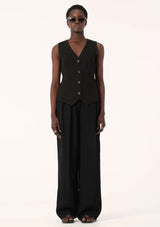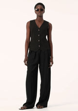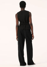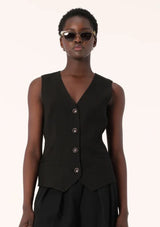 The Nina Vest from Elka Collective is designed in a tailored silhouette and features a traditional sleeveless cut with v-neckline, shell buttons, front welt pockets and a back strap with adjuster to cinch in the waist. Crafted from a twill-weave acetate fabrication, this vest can be styled alone or layered over thin knitwear, shirts and basic tees.