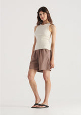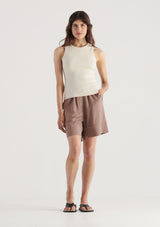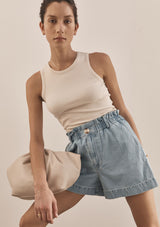 The Nola Tank by Elka Collective is a staple for every wardrobe. Made with a sleeveless design, the neck and armholes have a self-bind finish. The premium cotton fabrication is ribbed for a comfortable fit and sleek look.