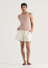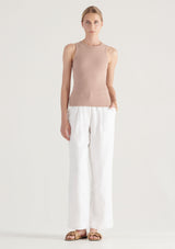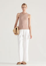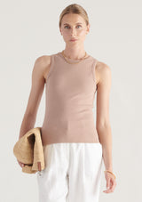The Nola Tank by Elka Collective is a staple for every wardrobe. Made with a sleeveless design, the neck and armholes have a self-bind finish. The premium cotton fabrication is ribbed for a comfortable fit and sleek look.