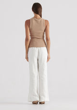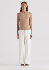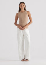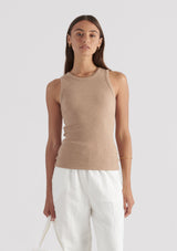 The Nola Tank by Elka Collective is a staple for every wardrobe. Made with a sleeveless design, the neck and armholes have a self-bind finish. The premium cotton fabrication is ribbed for a comfortable fit and sleek look.