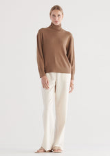 The Paola Knit rom Elka Collective is a classic piece, crafted from a merino wool blend in tonal hues and features a high neck ribbed collar with a loose fitting silhouette making it the perfect layering piece for transitional style.