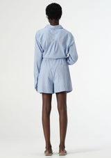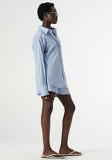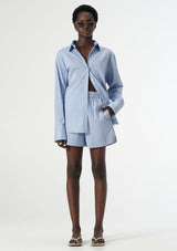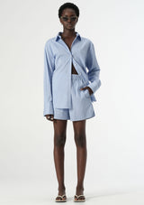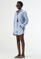 The Poppy Short from Elka Collective features an elasticised waist, side pockets and a back pocket with the signature Elka embroidered monogram. Crafted from a stretch cotton blend, this fully lined, striped short is a timeless addition to any wardrobe. Wear it alone or with the matching Poppy shirt for a polished ensemble.