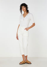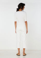 The Quinn Knit Top Knit from Elka Collective is crafted from a Cotton-Cashmere blend. Features a V-neckline, elbow length sleeves, contrast button front and ribbed detailing across the entire garment.