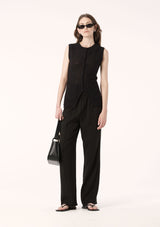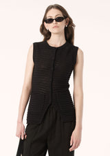 The Rohe Knit Vest from Elka Collective features a sleeveless design with a crew neckline, button through front and patch pockets. Crafted in a crotchet Cotton blended knit, this vest has a flattering longline silhouette that skims the figure and contrasting stitch patterns along the arm holes and hemline.