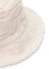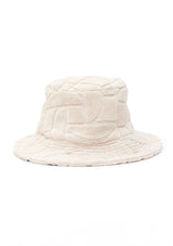 The Santoria Bucket Hat from Elka Collective offers a luxe feel the with its 100% cotton terry towelling fabrication and EC monogram print. Perfect for any vacation, this bucket hat will make your getaway even more stylish.