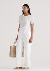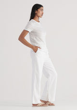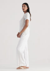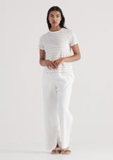 The Linen Crew Neck Tee from Elka Collective is a classic short sleeve crew tee made from premium 100% linen jersey. It features a self bind neck and sleeve.