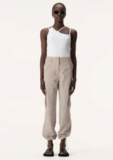 The Tamsyn Cargo Pant by Elka Collective features a classic zip and button fly, cutaway, side, and back pockets and a straight leg in a classic militaristic cargo styling. The elasticated ankles can be adjusted using a drawstring, giving freedom to create your perfect look. Crafted from a silky-look nylon fabric with cotton lining in the pocket interiors, this relaxed pant is a lightweight option for warmer weather.