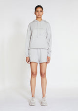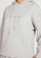 The Trademark Hoodie from Elka Collective, is crafted from 100% French Terry Cotton. It features a front pocket, hood with drawstring, and tonal raised print on front and back.
