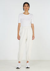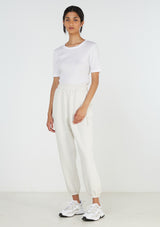 The Trademark Trackpant from Elka Collective, is crafted from 100% French Terry Cotton. It features a relaxed fit, elasticated waist with internal draw cord, side seam pocked, raised print on the front and elasticated cuff hem.