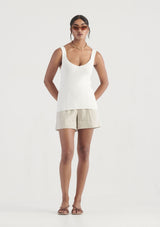 The Vittoria Knit Top by Elka Collective is a great layering piece. This fully fashioned knit features a soft v-neckline, wide straps and is crafted from a viscose nylon yarn with a hint of elastane for added stretch.