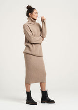 The Cane Skirt is spun from soft cashmere and wool in a lightweight ribbed-knit sourced from Italy. This slim style has an elasticized waist and midi hem. Wear yours with any Estilo knitwear styles in the same shades, or match it with our Cane Turtleneck.