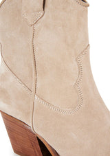 The Cavalier Suede Boots are inspired by the classic cowboy style with curved cuffs, pull tabs and top stitching. They give the perfect amount of lift and are ideal to wear with midi dresses or slim jeans.