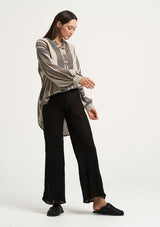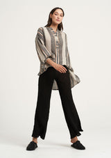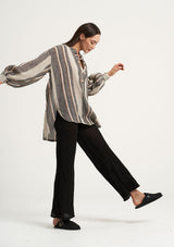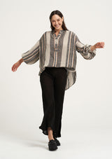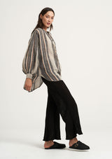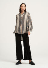 This billowing blouse is a wardrobe staple with a loose fit silhouette and balloon sleeves and buttoned cuffs. Slightly longer in the back, you can undo the buttons to show off the neckline and style simply with a pair of linen pants or jeans alike.