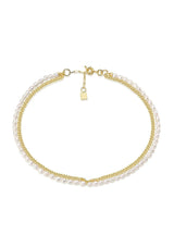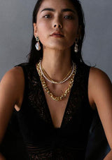 The F+H Janet Pearl + Chain Choker Necklace, features intertwined freshwater baroque pearls and statement chain.