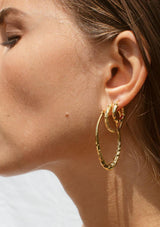 The F+H Long Ride Hammered Hoops feature a contrast of smooth and hammered textures. Designed for pierced ears, this design can be styled by themselves or layed.