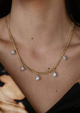 The Ramble On Necklace features five pieces of beautiful baroque freshwater pearls, on a vintage style curb chain.