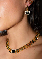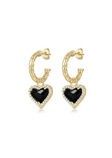 The F+H Whitney Gemstone Heart Earrings feature an easy-wear hoop design with oversized heart gemstone pendant.