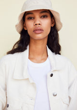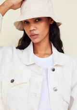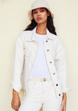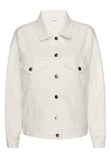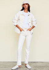 Le Oversize Jacket by Frame features a button up front closure with a collar and flap pockets. This oversized handmade denim jacket is crafted from undyed and unbleached recycled and upcycled Cotton, reducing the dyeing process's impact by eliminating toxic chemicals and reducing energy and water use.