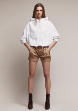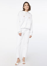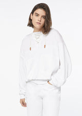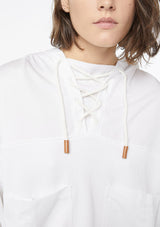 The Laced-Up Sweatshirt by FRAME is crafted from 100% Organic Cotton. This sweatshirt features a lace-up front, with voluminous sleeves and hood.
