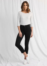 The Le Color Crop Jean features a mid-waisted skinny fit through from the hips to ankle. It also features a fly/zip closure, pockets, and a comfortable stretch-denim.