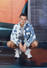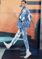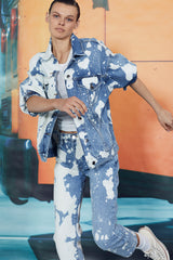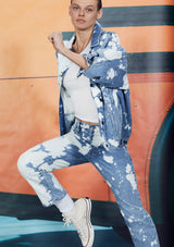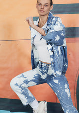 Le Oversize Jacket by Frame features a button up front closure with a collar and flap pockets. This oversized handmade denim jacket is crafted from Cotton and features a unique graphic bleach pattern.