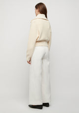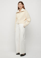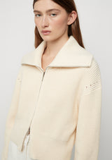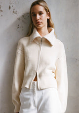The Astrid Double Zip Cardigan from Friend of Audrey features an oversized collar, full length oversized sleeves and double zip closure. This slightly cropped, mid-weight cardigan is crafted in 100% Cotton ribbed knit fabrication.