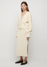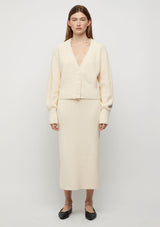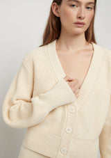 The Linnea Cotton Cardigan from Friend of Audrey features a V-neckline, full length oversized sleeves and button closure. This cropped, mid-weight cardigan is crafted in 100% Cotton ribbed knit fabrication.