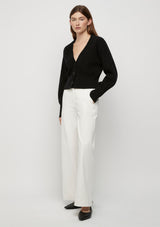 The Linnea Cotton Cardigan from Friend of Audrey features a V-neckline, full length oversized sleeves and button closure. This cropped, mid-weight cardigan is crafted in 100% Cotton ribbed knit fabrication.