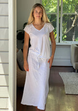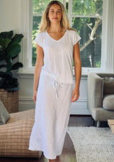 The Anthea Skirt from frockk features a longer style skirt with a drawstring waist and raw edge detail at the hem. Cut on the bias so it just skims your shape but doesn’t cling. This skirt is crafted from 100% linen; a non-stretch fabrication that is breathable and ideal for everyday wear.