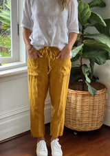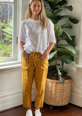 The Jessie Pant from frockk features an elasticised drawstring waist, patch pockets and a tapered leg with a relaxed silhouette. This pant is crafted from 100% linen; a non-stretch fabrication that is breathable and ideal for everyday wear.