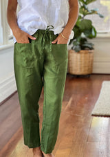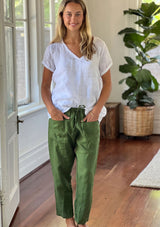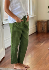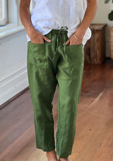 The Jessie Pant from frockk features an elasticised drawstring waist, patch pockets and a tapered leg with a relaxed silhouette. This pant is crafted from 100% linen; a non-stretch fabrication that is breathable and ideal for everyday wear.
