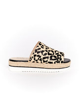 The Mansfield Sandal by HAEL & JAX features a one strap design that sits smoothly over the front of the foot and has rope detailing on the platform.
