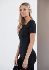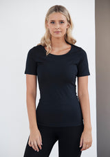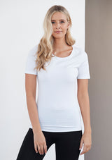 The Hanro Short Sleeve Shirt is the perfect basic for any wardrobe, suitable for everyday wear in every situation. Crafted from an ultra-soft blend of micromodal and elastane which gives the garment a touch of stretch for versatility and comfort. Featuring short sleeves, a flattering scoop neckline, flat hemmed bottoms and sleeves and subtle stitch detailing along the seams.