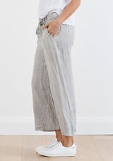 The Khlassik Gracie Pant ticks all the boxes. Designed to sit on the natural waistline, these Pants are crafted from lightweight Linen that are perfect for the warmer months of the year. Featuring a cropped, wide-leg silhouette, with an elasticised waist and removable tie front belt.