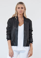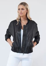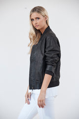 The Khlassik Bomber Jacket is a must have addition to your winter collection. This modern style leather jacket is cut for a relaxed fit in contemporary bomber style. Crafted from premium leather, this bomber is ultra-soft and comes fully lined. The leather bomber features long sleeves, front pockets, a zip closure in the colour gunmetal, and an elasticised hemline and collar.