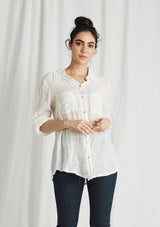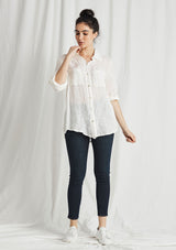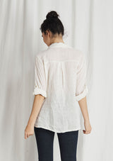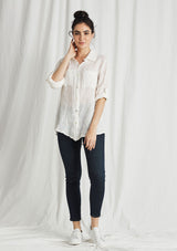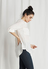 The Khlassik Linen Pocket Shirt is crafted from 100% Linen. This collared shirt features long sleeves with cuffs and a button closure, button front placket detailing, and a rounded hemline.