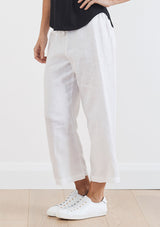 The Khlassik Summer Cropped Pant ticks all the boxes. Designed to sit on the natural waistline, these Pants are crafted from lightweight Linen that are perfect for the warmer months of the year. Featuring a cropped, wide-leg silhouette, with a drawstring waist for added detail.