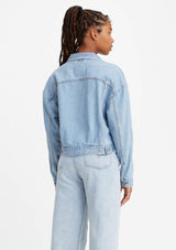 The LEVIS Heritage Trucker Jacket features classic cut design, front pleats, patch pockets, long sleeves and silver hardware detailing. Slightly cropped, falling to waist length.