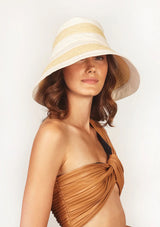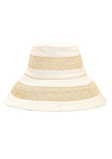 The Ciabatta Hat from New York designer, Lola Hats features an exaggerated silhouette around the face. Crafted in a heavyweight cotton cloth with raffia trim, this hat sits low on the brow and provides ample sun protection.