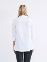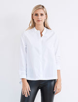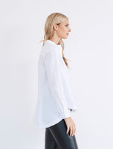 The Lounge the Label Helene Top is a wardrobe essential. Crafted from 100% cotton this shirt is a must-have piece. Featuring a high neckline, button up front, full length sleeves, A-line silhouette, scooped hemline and longer back. Wear this effortless basic from work to weekend, day to night.