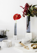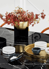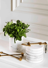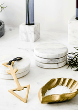 The Marble Basics Basic Round Coasters make the perfect complement to any table setting. Keep these stacked on a coffee or side table ready to lay out for entertaining guests as they simultaneously create a beautiful little sculpture amidst your decorating. You can place one in the bathroom for resting your jewels, or hand soap or a bar of soap. These are handmade products and Marble is a natural material, so every product differs slightly in size and colour to those visible in the store. All of our Marble Basics pieces are original with different veining and patterning which makes each piece uniquely beautiful. Stone is a natural product and may contain fissures, cracks, holes and pits. No two pieces of natural stone are alike, please be aware that cream tones may be present as well as browning, yellowing and spots.