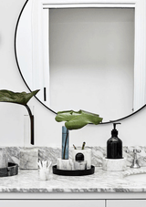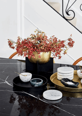 The Kindred by Marble Basics Black Round Nesting Tray (Small) is the ideal size for holding a couple of objects. It works well in the bathroom holding a bottle of hand soap and a candle or rest it on your coffee table with a plant or vase on top.