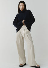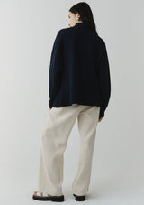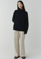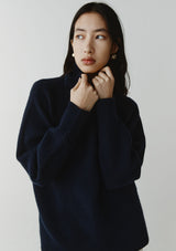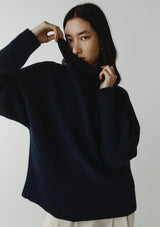 The Dali Jumper from New Zealand designer, Marle is knitted in a beautifully soft wool and cashmere yarn. This relaxed jumper features an exaggerated high neck, full length sleeves and a drop shoulder with a horizontal rib across the body and vertical rib at the cuffs of the sleeve and neck.