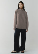The Dali Jumper from New Zealand designer, Marle is knitted in a beautifully soft wool and cashmere yarn. This relaxed jumper features an exaggerated high neck, full length sleeves and a drop shoulder with a horizontal rib across the body and vertical rib at the cuffs of the sleeve and neck.