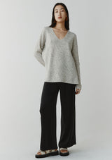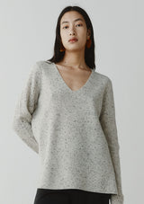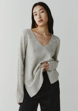 The Emeri Jumper from New Zealand designer, Marle features a feminine deep V-neckline with full length sleeves and an elongated silhouette through the body finished with slits at each side. Knitted in 100% cashmere using a plain stitch, this jumper features a grey marle base with darker speckles.