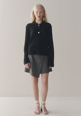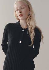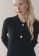 The Ena Top from NZ designer, Marle features a polo style with a standard collar secured by two contrasting shell buttons at the centre front and full length sleeves. This lightweight ribbed knit top is crafted from 100% linen and has a loose silhouette that falls to the hip.