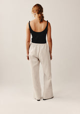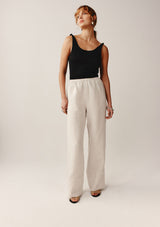 The Etta Pant from New Zealand designer, Marle is a wide-leg pant that features an elasticated waistband and an oversized cuff finished with a drawn thread work detail at the seam.