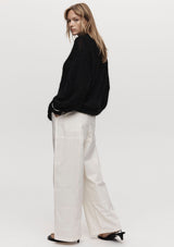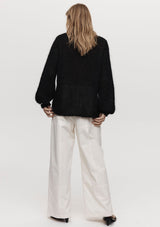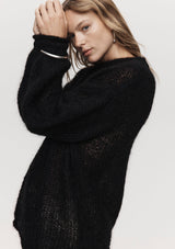The Florence Jumper from New Zealand designer, Marle, features a high crew neckline, dropped shoulders, subtle blouson sleeves and a relaxed fit through the body before falling to an elongated length. Crafted from a Mohair and Wool yarn using a hand knit stitch with a loose weave, this jumper offers both comfort and a touch of delicate sheerness.